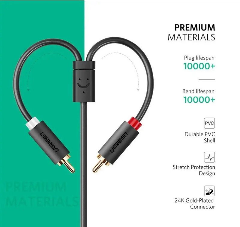 - 1 x UGREEN 3.5mm Male to 2RCA Male Cable (2m or 3m or 5m)